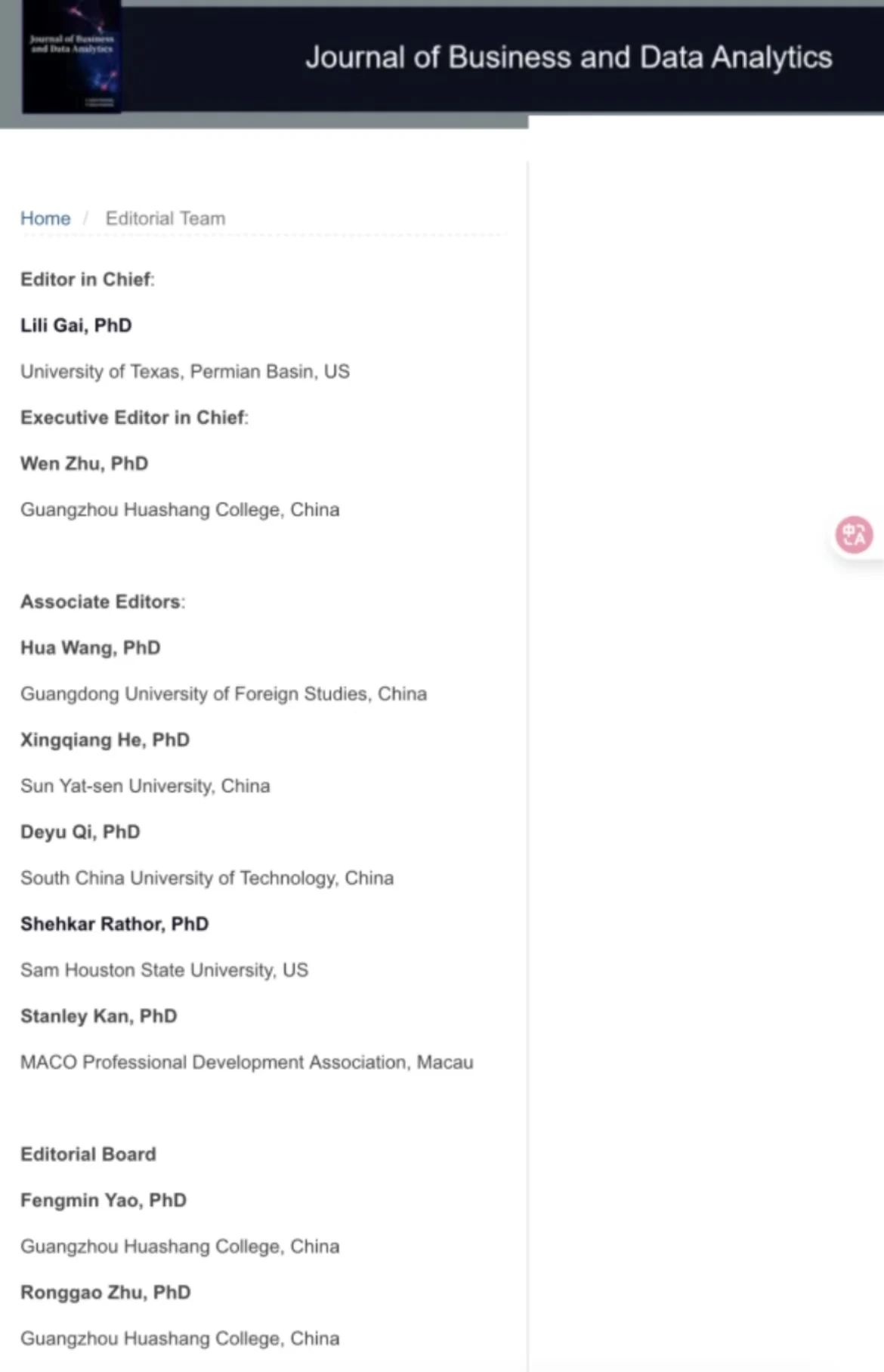 作为大湾区民办高校首本获批的国际英文学术期刊,《Journal of Business and Data Analytics》专注商科与数据科学前沿,汇聚全球智慧,致力于打造国际一流学术交流平台。在华商科教集团和太阳集团tyc4633领导的大力支持下,期刊团队提出“三年内冲击EI收录”的目标,助力学科建设,提升学校国际学术影响力。