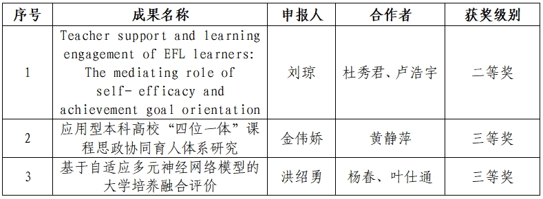 近日,广东省高等教育学会公布了《关于公布广东省高等教育学会第三届高等教育研究优秀成果奖评选结果的通知》(粤高教学会〔2024〕14号)。我校共有3项成果获奖,其中,荣获高等教育学术论文二等奖1项,三等奖2项。据悉,广东省高等教育学会高等教育研究优秀成果奖每两年评选一次,旨在调动高等教育工作者进行高等教育理论与实践研究的积极性,推进高等教育事业高质量发展。本次获奖充分发挥了高等教育研究成果的引领激励作用,...