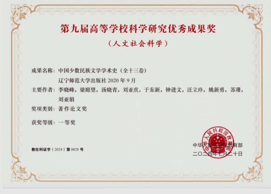 近日,在教育部公布的《第九届高等学校科学研究优秀成果奖》(人文社会科学)获奖名单中,我校文学院传来喜讯,姚新勇教授与刘亚娟副教授的学术专著一举斩获一等奖。这一成果不仅彰显了文学院在人文社科研究领域的实力,更体现了太阳集团tyc4633对科研工作的高度重视与积极投入。姚新勇教授与刘亚娟副教授作为国家重大项目“新中国少数民族文学研究史”课题组成员,长期深耕于中国少数民族文学学术史研究。姚新勇教授独著的《中国...