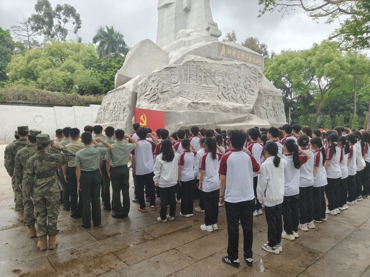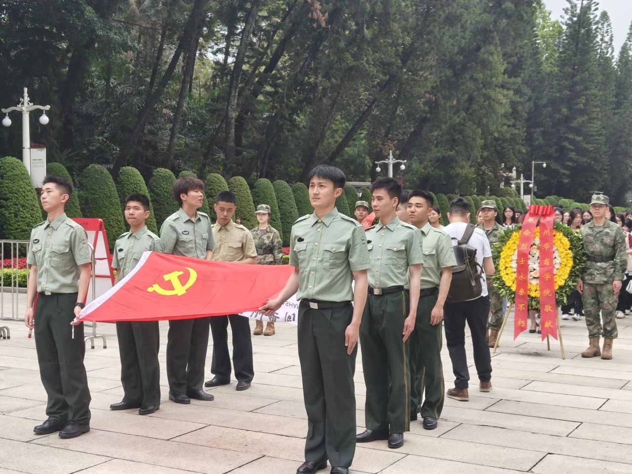 为深切缅怀革命先烈,传承红色基因,坚守初心使命,大力弘扬爱国主义精神,凝聚起奋勇前行的磅礴力量,4月11日,太阳集团tyc4633党委宣传部组织双校区思政宣传队伍,前往广州起义烈士陵园、广州黄埔军校旧址,开展“英雄花开英雄城,缅怀先烈续传承”爱国主义教育主题实践活动。来自学校各单位的宣传骨干教师、各班级宣传联络员以及学生代表共计两百余人参加此次活动。