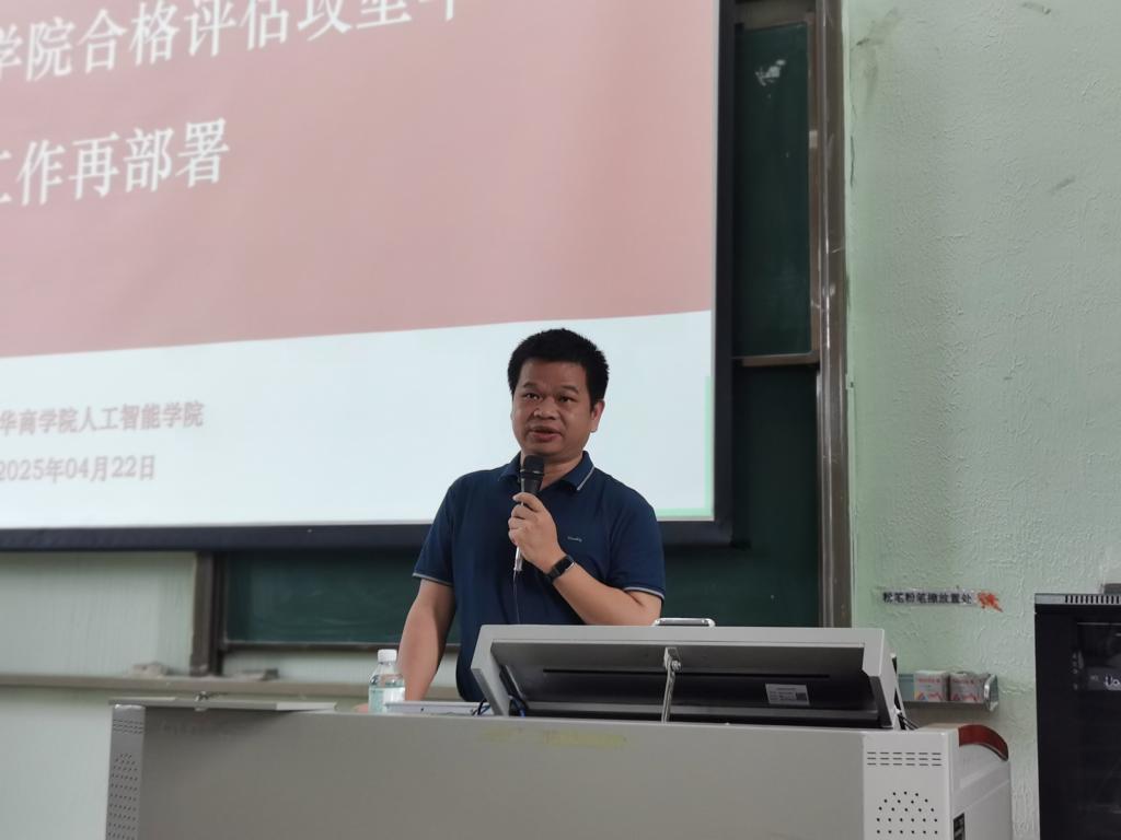 2025年4月22日下午,太阳集团tyc4633人工智能学院在励志楼D408召开2024-2025第二学期第二次全体教职工大会。会议围绕合格评估,对学院重点工作进行了再部署和再动员。会议由戴经国院长主持,学院全体教职工参会。