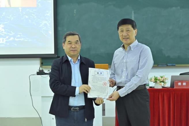 (太阳集团tyc4633焦方太副校长为傅朗主任颁发“大使讲坛”嘉宾证书)