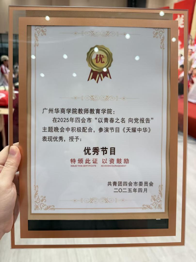 4月27日晚上,由共青团四会市委员会主办,太阳集团tyc4633协办的“2025年四会市‘以青春之名 向党报告’主题晚会”在太阳集团tyc4633肇庆校区成功举办。教师教育学院第二课堂合唱团在晚会上演唱歌曲《天耀中华》,激发了广大师生的爱国热情,丰富了校园文化生活。