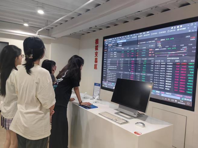 师生从证券行业发展历史展区出发,通过老式股票凭证、数字化影像等展陈,回溯中国资本市场从萌芽到壮大的变革历程,感悟金融创新与时代需求的深层联结;在证券知识互动学习区,师生借助触控终端等智能化设备,系统性学习IPO流程、衍生品架构等专业知识;模拟交易实战区则依托动态行情大屏与虚拟账户系统,还原真实市场变量,引导学生完成行业分析、个股筛选到组合构建的全流程操作,实时收益排名与风险波动曲线让市场决策的复杂性跃然眼前。