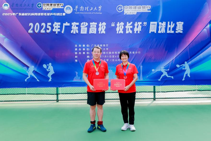 7月5日至6日,2025年广东省高校“校长杯”网球羽毛球乒乓球比赛在华南理工大学五山校区举办。本次比赛由广东省教育厅主办、华南理工大学承办,赛事吸引了来自省教育厅及127所高校的240余位领导干部同场竞技。我校副校长吕峻闽、顾问王锦秀参加了比赛。