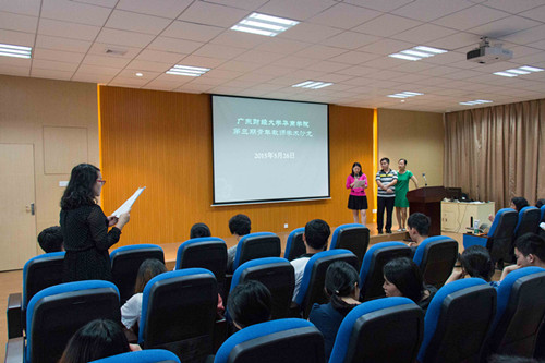 本期沙龙由工商管理系贺嫦珍老师做主题为“营销研究思路解剖—经典论文赏析”的发言,她从营销的研究思路、研究框架、论文的撰写赏析三个方面分享了她的科研心得体会;张丽娟老师则通过对微信传播现象的观察提出了新媒体背景下独立学院品牌形象塑造的营销策略研究课题;钟晶灵老师以自身的研究课题《小微企业活力的研究》为例阐述了经典论文带给自已的启示。