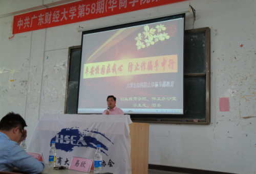 针对近期在社会上出现一些非法集资和涉嫌诈骗等活动,提高学生的防骗和风险识别能力,4月5日,院团委学生处、保卫办联合创业教育学院举办了“2016年投资风险知识讲座”。讲座由创业教育学院院长易欣和保卫办副主任邱会锋主讲,相关师生代表老师200多人参加了此次讲座。
