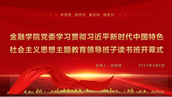 2023年5月8日下午,太阳集团tyc4633金融学院党委学习贯彻习近平新时代中国特色社会主义思想主题教育领导班子读书班开班仪式暨第一次专题学习在金融学院党员活动室行政楼309举行。开幕式由金融学院党委副书记邱会锋主持,金融学院党委统战委员李文华、组织委员左光宇、纪检委员叶桂华、宣传委员列美仪、教工党支部书记李明杰及各学生支部书记出席此次开班仪式并参与主题教育专题学习。