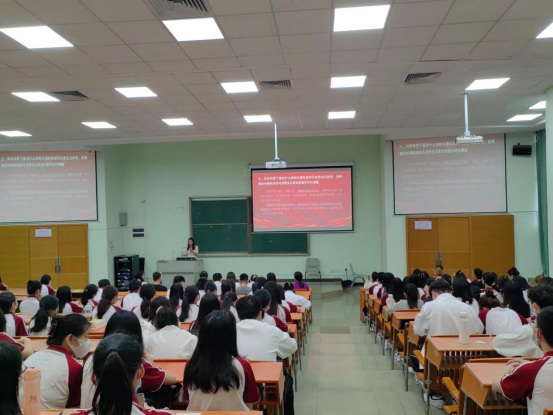 接着,管理学院学生第四党支部书记郭思琪同志授课的主题是伟大时代的历史跨越。进入新时代,在这十年来,我们国家经济发展呈现平衡性、协调性、可持续性明显增强,经济实力的上升,会给我国其它领域的改革提供重要的物质条件,在经济领域形成了新的思想;十年来,以习近平同志为核心的党中央不断深化对民主政治发展规律的认识,提出全过程人民民主重大理念;我国文化自信明显增强,大力弘扬中华传统文化;人民生活持续改善,我国社会建设全面加强,人民生活全方位改善,社会治理社会化、法治化、智能化、专业化水平大幅度提升,呈现出人民安居乐业、社会安定有序的良好局面,续写了社会长期稳定奇迹。