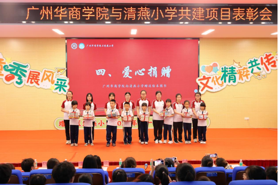 支戈壁副校长为本次表彰会致辞。她表示,华商学院与清燕小学仅有一墙之隔,具备先天的地理优势,虽各自培养的学生层次、阶段有所不同,但为党育人、为国育才是两校共同的使命,借力高校资源优势,助推当地基础教育高质量发展也是我们的责任担当。教师教育学院作为广东基础教育发展研究基地,更是要担负起助力清燕小学全面发展的重任。本次项目共建活动既给师范类的学生们提供了实践锻炼的平台,将自身专业和技能融会贯通,发挥自己的专业领域优势,同时又促进了清燕小学德育、美育等教育的发展,促进两校学子融合,携手共同进步成长。今后,两校将在师范生教育实践、教学研究与改革、基础教育教师培训与专业成长等多方面进一步加强合作交流,共同发展,为增城区教育事业做出应有的贡献。