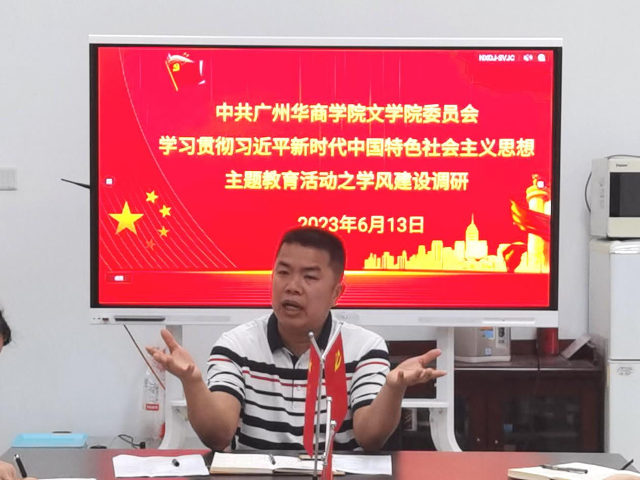 为扎实推进主题教育调查研究工作,深入了解学院学风建设情况,营造优良学风,6月13日下午,文学院党委在厚德楼101会议室召开学风建设座谈会。文学院党委委员、各支部书记以及各班级学生干部参加。座谈会由文学院党委副书记郭堪通主持。