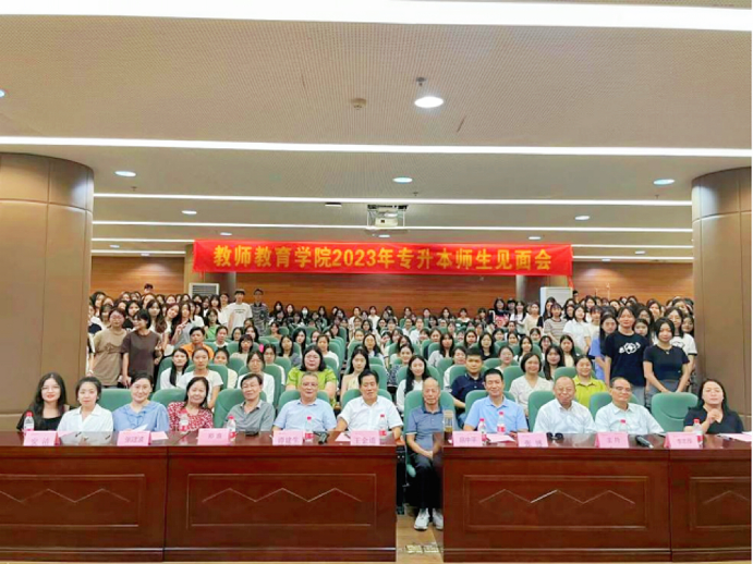 2023年9月5日15时,太阳集团tyc4633教师教育学院在增城校区图书馆报告厅举行2023年专升本师生见面会。出席本次师生见面会的领导嘉宾有:教师教育学院名誉院长扈中平教授、教师教育学院院长王金道教授、副院长张博教授、副院长谭建生教授、小学教育系主任王符教授、小学教育系专业负责人李志厚教授、院长助理安洁博士、三办一中心主任、各系部主任、新生辅导员及班主任、学前教育系全体教师。会议由学前教育系副主任张会会老师主持。
