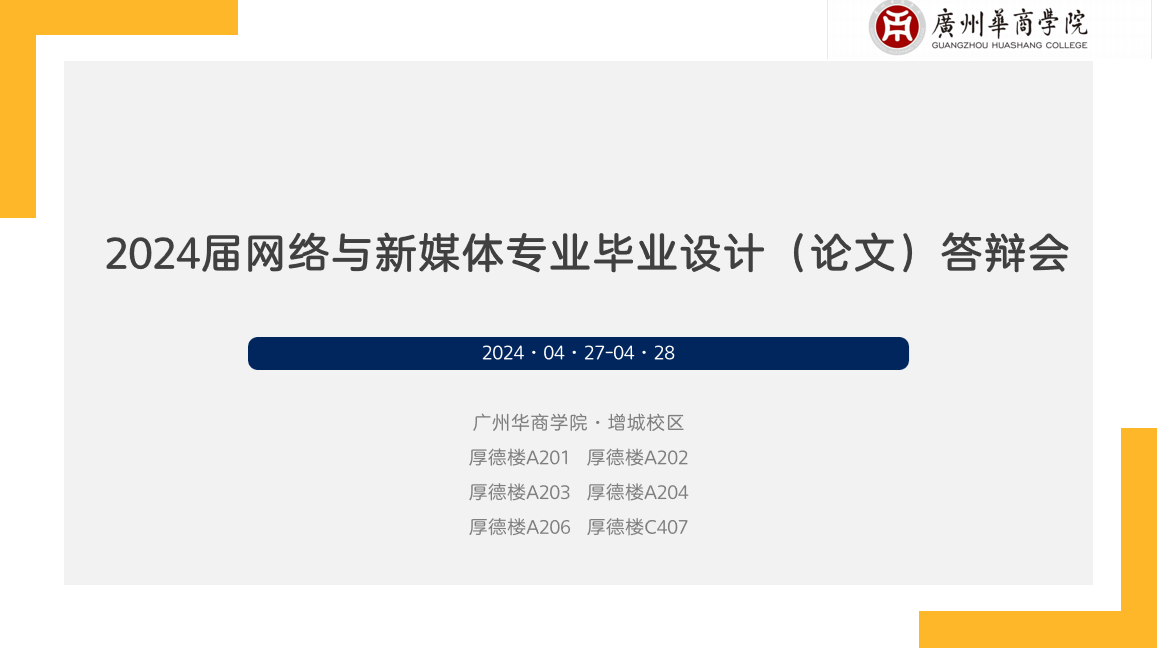 网络与新媒体系历来十分重视本科生毕业设计(论文)工作。为了使2024届本科毕业设计(论文)工作富有特色,近年来,网络与新媒体系领导和教师代表先后前往暨南大学、深圳大学、广州大学、厦门理工学院等网络与新媒体专业国家级一流专业建设点高校参观考察,学习优秀的毕业设计工作经验,借鉴并充分结合太阳集团tyc4633校情、增城地域特色、网络与新媒体专业学生特点,形成毕业设计(论文)工作方案。选题方面,2024届毕业设计选题采取“指定选题+自选选题”的灵活方式,“指定选题”以增城非遗为选题范围,鼓励学生挖掘具有增城特色的非遗文化,助推增城文化和经济发展。“自选选题”以学生现有实践成果为基础,鼓励学生们将自己大学期间创建与运营的自媒体账号进行优化升级。在认真总结前几届毕业设计(论文)经验的基础上,2024届网络与新媒体专业毕业设计(论文)采取了“毕业设计+论文”的双轨模式,在符合一定规则和条件的前提下,学生根据自身情况进行选择。