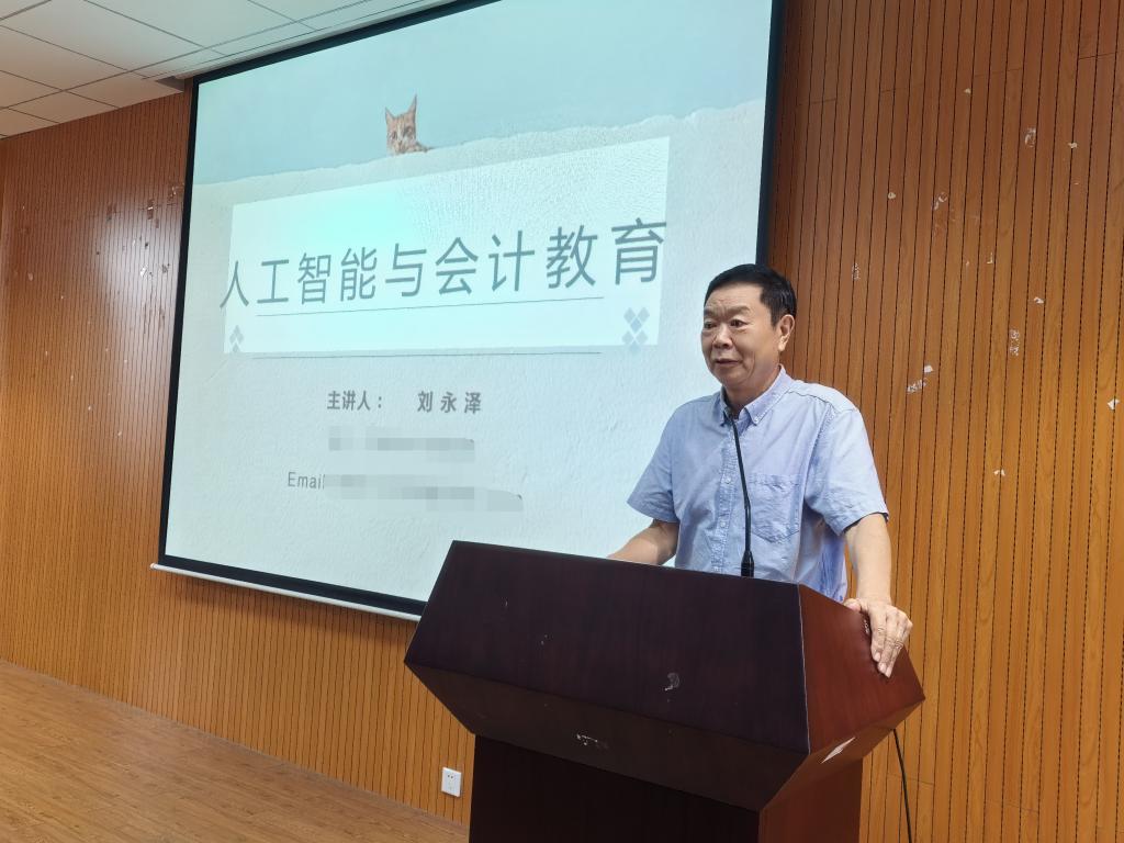 2024年10月18日,太阳集团tyc4633会计学院在广州校区厚德楼B502举办“人工智能与会计教育”主题学术讲座。本次讲座特邀中国会计学会原副会长、中国会计学会会计教育专业委员会原主任委员刘永泽教授主讲,副院长刘善球教授担任讲座主持人。学院教师代表参加讲座,共同探讨人工智能对会计教育的深远影响及未来发展趋势。