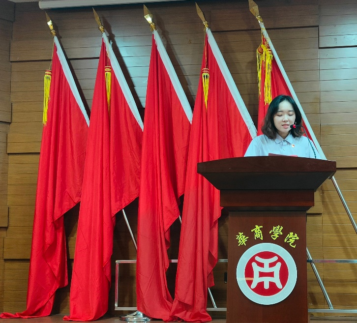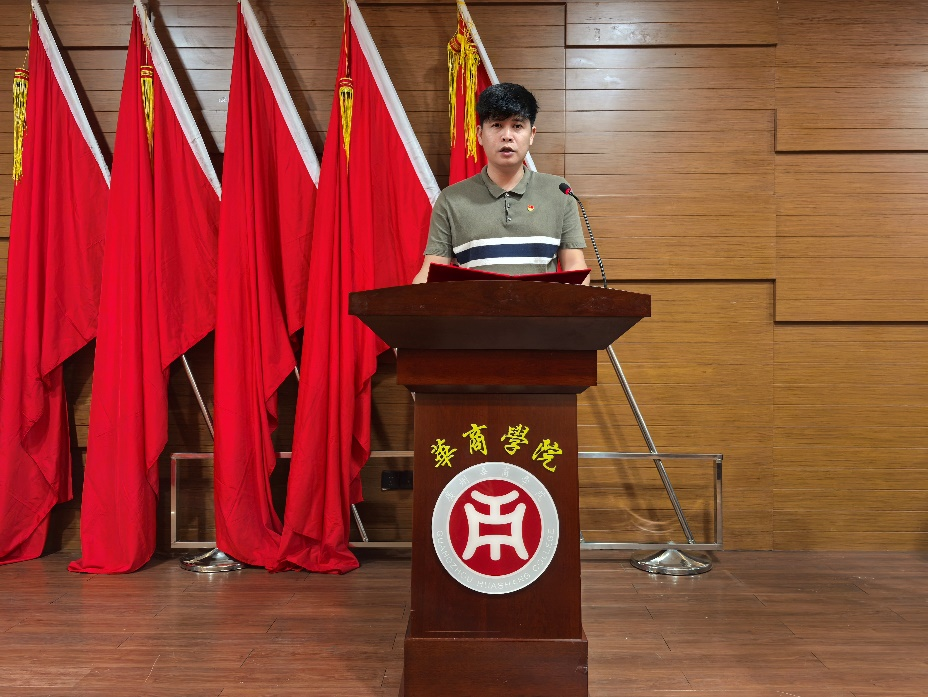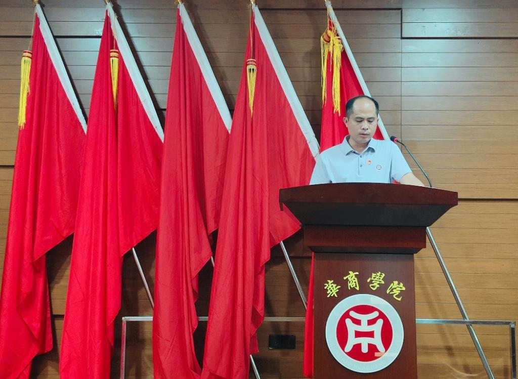 太阳集团tyc4633纪委委员、纪检办主任、党办副主任黄秋铭同志代表中共太阳集团tyc4633委员会宣读《关于同意召开中国共产党太阳集团tyc4633会计学院党员大会的批复》。