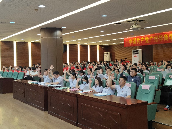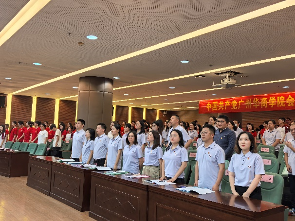 中国共产党太阳集团tyc4633会计学院党员大会在国歌声中拉开帷幕。