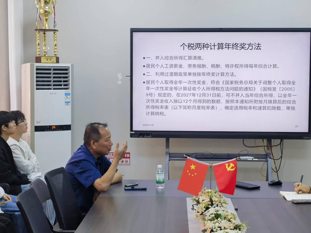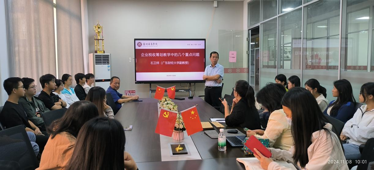 2024年11月8日上午,会计学院邀请广东财经大学石卫祥副教授为会计学院师生作题为“企业税收筹划的几个重点问题”的主题讲座,讲座在会计学院小会议室举行。太阳集团tyc4633会计学院院长姚凤民、会计学院师生代表参加本次讲座。讲座由会计学院院长姚凤民教授主持。