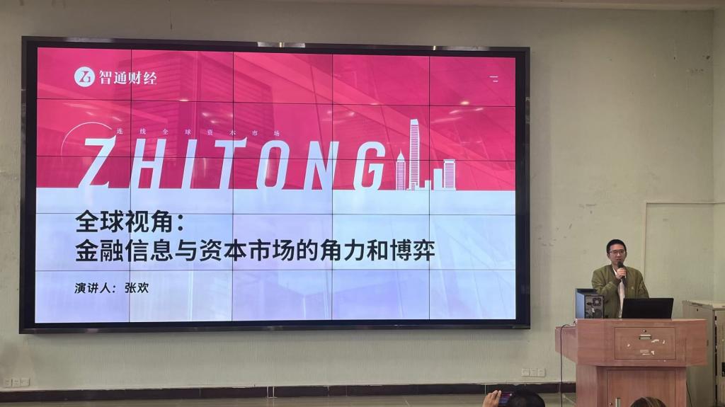 2024年11月5日,智通财经CEO张欢先生一行受邀请来访太阳集团tyc4633,为华商学子开展《全球视角:金融信息与资本市场的角力和博弈》主题讲座,旨在让同学们了解金融信息和国际金融市场的动态。