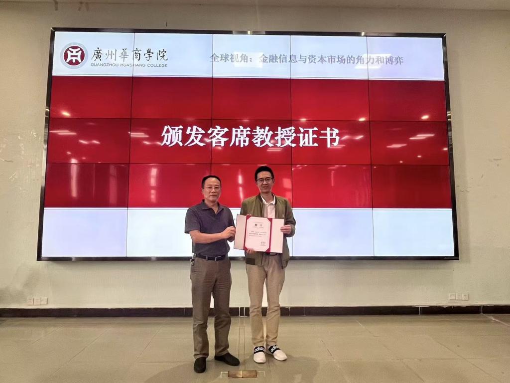 会计学院副院长刘善球教授为张欢先生颁发客席教授证书。