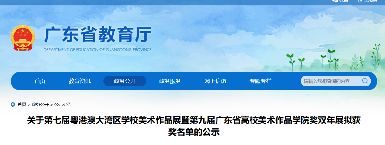 12月25日,根据《广东省教育厅关于举办第七届粤港澳大湾区学校美术作品展暨第九届广东省高校美术作品学院奖双年展的通知》的安排,经省级复赛、现场评审,确定了第七届粤港澳大湾区学校美术作品展暨第九届广东省高校美术作品学院奖双年展拟获奖名单。经过激烈角逐,教师教育学院师生共斩获6项奖项,其中,教师作品获奖3项,学生作品获奖3项。