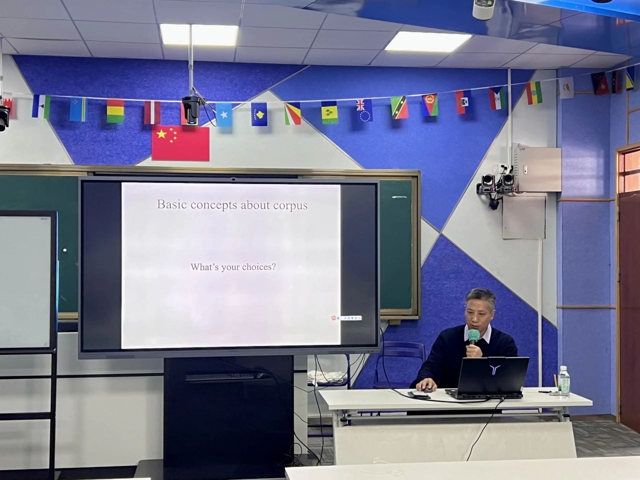 在1月3日的首场讲座中,戴光荣教授以语料库的基本概念为切入点,深入浅出地介绍了语料库的基础知识、类型与功能,并向老师们展示了如何高效精准运用语料库进行数据检索多种方法。