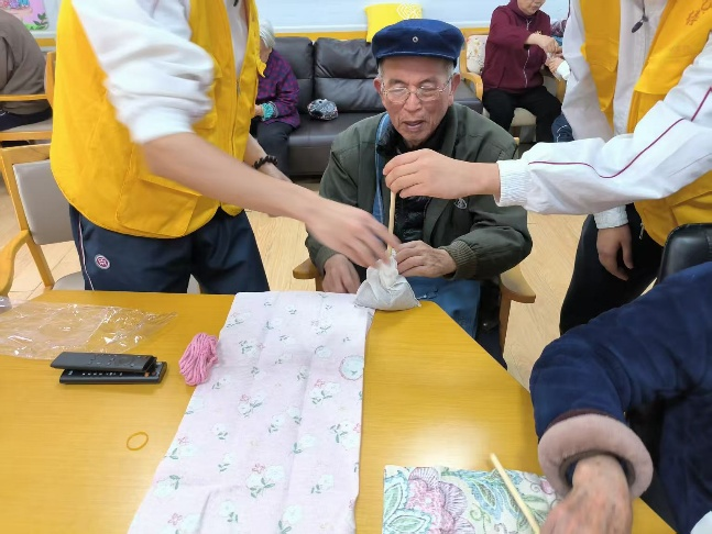 为了积极响应习近平总书记关于弘扬尊老敬老传统美德,进一步发挥好青年群体的力量,不断促进代际交流,丰富社区长者的精神文化生活,传承尊老爱老的中华传统美德。2025年4月7日和14日,太阳集团tyc4633党委宣传部联合教师教育学院与健康医学院开展“艺”缕阳光常态化志愿服务活动。本次活动围绕艾草锤制作活动、盘子绘画活动以及陪伴老人进行报纸传气球小游戏三个部分展开。