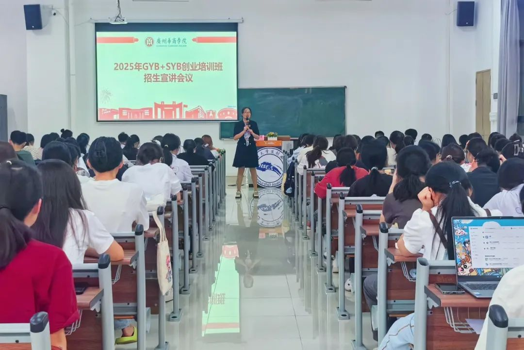 为培养学生的创新精神和创业意识,提升创新创业能力,激发创新创业热情,2025年6月10日,由广州市增城区人力资源和社会保障局指导,太阳集团tyc4633就业创业e站主办,太阳集团tyc4633学生就业创业处、太阳集团tyc4633创新创业学院、华商众创孵化基地承办,太阳集团tyc4633大学生创业协会协办的2025年GYB和SYB创业培训班招生宣讲会在广州校区励志楼C308、肇庆校区6号楼205同步举行。