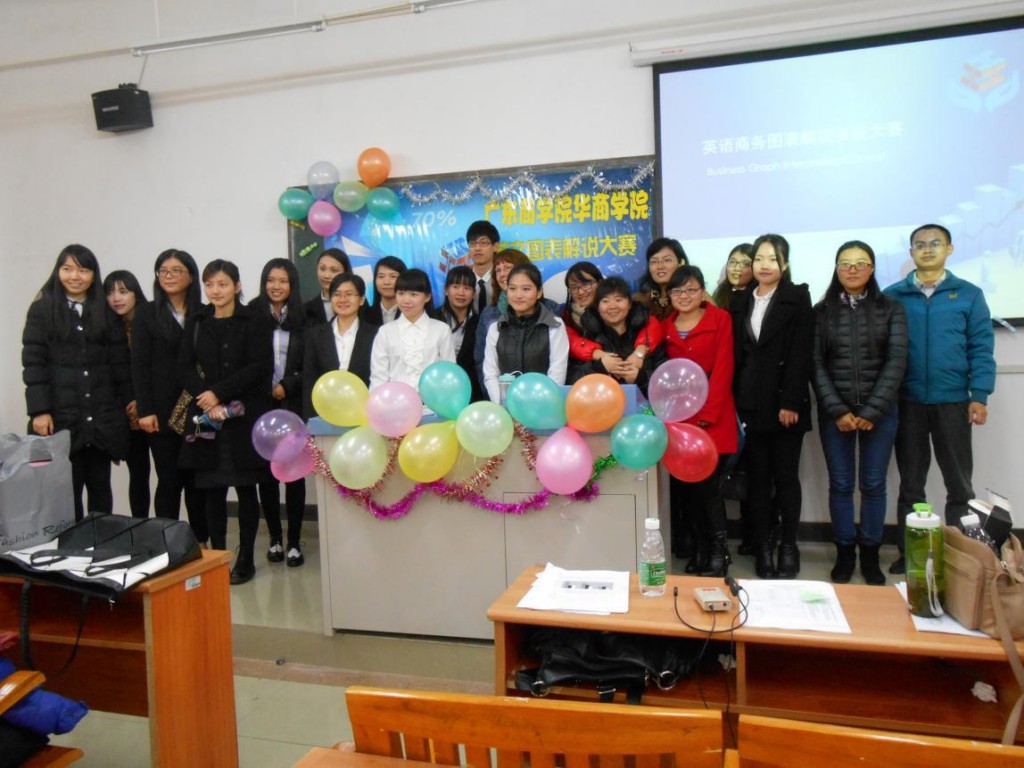 为了培养我系英语专业及经济系国际贸易、国际商务专业学生在国际商务环境下的英语应用能力和商务实践操作能力,我系于2013年12月17日15点在励志楼D106举行首届华商学院商务英语图表解说技能大赛决赛。出席本次比赛的有外语系吴峰松老师以及其他英语专业教研室老师,英语外教Deborah Shaw,还有进入决赛的参赛选手以及学生观众。