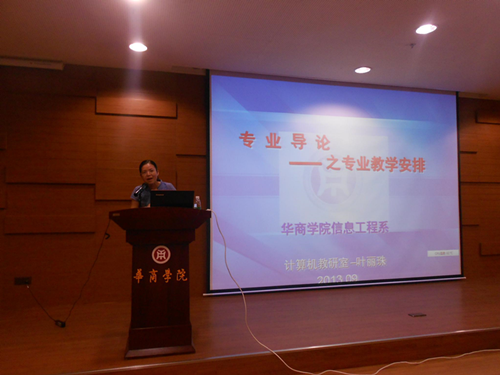 经历了艰苦的高考,经过了漫长的暑假,新生们终于踏进了美丽的大学校园。信息工程系的新生虽然报了信工系,但是信工系主要课程是怎样的,自己所学的专业到底能学到什么,以后能做什么工作,有一大部分的新生还是对这一知半解甚至是毫不了解一头雾水的。所以信息工程系举行了这次师生见面会,先是骆耀祖主任致辞表示对新生们的欢迎并简单作了专业介绍,然后是老师代表发言,最后老生代表以及新生代表发言。由于当天刚好是教师节,新生们还准备了表演,对老师们演唱了一曲《月亮代表我的心》,祝各位老师教师节快乐。最后是由骆耀祖主任和叶丽珠老师的《专业导论》课程,先让新生们对信息工程系,对他们所选择的专业有个相对了解,知道相关的就业前景,解决了新生们很大的困惑。