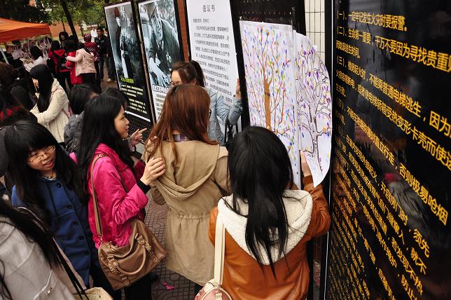 2012年3月13日中午经济系团总支在明星餐厅门口作“雷锋助人,安全伴行”展览宣传,宣传雷锋事迹,倡导雷锋精神;传播安全教育,普及安全知识。