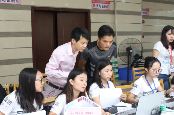 2017年9月7日广东财经大学华商学院的迎接新生工作仍在继续,早上7点,我系领导老师来到迎新现场指导各项工作有条不紊的开展,并鼓励大家继续做好迎新工作。