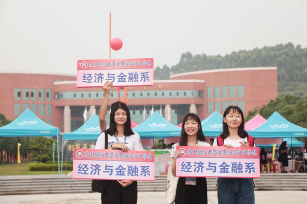 华商各个校道、图书馆门口、迎新大本营等各工作点随处可见我系志愿者和工作人员,他们身着黄色、白色或粉色的统一衣服,忙碌地做着准备工作。他们搭帐篷,搬桌椅,领物资,一起认真工作着,只为保障新生报到注册顺利进行。