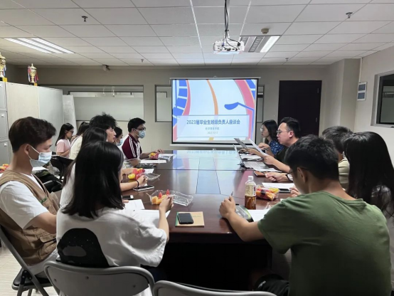 本次会议由经济贸易学院党委副书记、学工办主任宋元跃老师主持,2019级辅导员刘龙真老师以及毕业班学生代表参会。