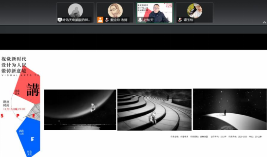 11月15日,传播与传媒学院网络与视频系邀请湖北美术学院叶佑天教授,开展主题为《“视觉新时代:设计为人民+锻铸新意境”》的学术讲座。视频系副主任戴金玲副教授是本次会议的主持人。因为疫情防控原因,本次讲座为线上形式,讲座总参与人数达到腾讯会议上限300人。