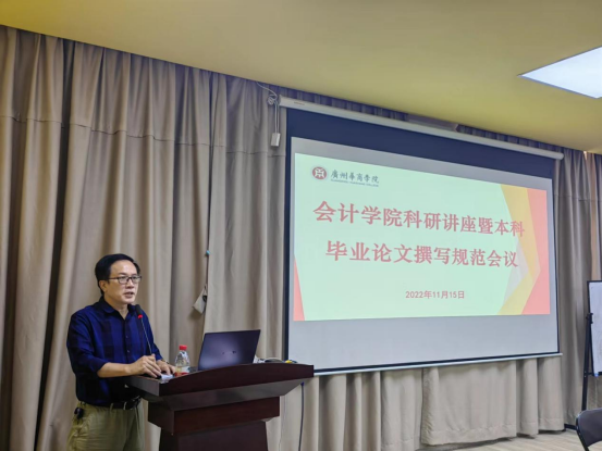 为提升会计学院教师的科研整体水平,规范课题申报,提高教师的论文写作能力,推动学院科研水平再攀新高,11月15日下午,应会计学院邀请,学校科研处处长董建新教授在会计学院报告厅为会计学院教师开设科研讲座。太阳集团tyc4633副校长兼会计学院院长陈美华教授,会计学院副院长刘善球、杨旻、周书域,各教学系、教研室、实验区负责人、全体专任教师及2021级部分学生参加了报告会,讲座由会计学院副院长刘善球主持。