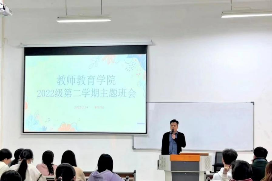 筑梦新学期,扬帆再启航。为深入贯彻落实省教育厅关于春季开学工作的部署要求,结合学校实际情况,进一步增强我校学生安全意识,提高个人防范能力。教师教育学院通过主题班会的形式,组织各年级召开以防范电信网络诈骗、消防安全、交通安全、防范自然灾害等内容的为主题的宣传教育班会,帮助同学们尽快调整状态,以崭新的精神面貌投入新学期的学习生活。教师教育学院分别于2月21日与2月24日开展2022-2023第二学期开学主题班会暨文明安全教育班会。以班级为单位开展,由各年级辅导员主讲。