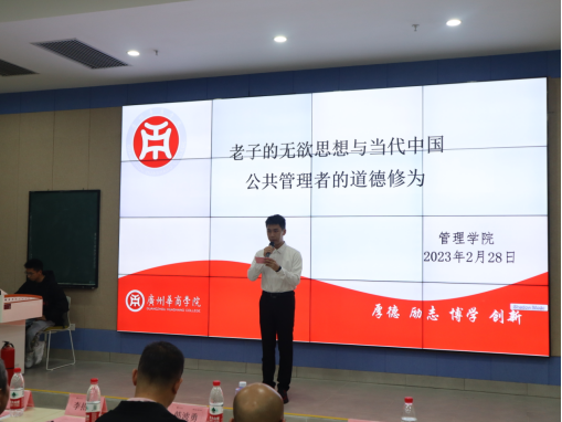 为营造良好的学术氛围,下午三点五十分,李院长在太阳集团tyc4633四会校区8号楼109教室为学院学生作了题为“老子的无欲思想与当代中国公共管理者的道德修为”的学术讲座。