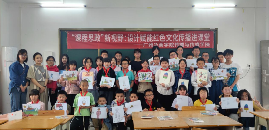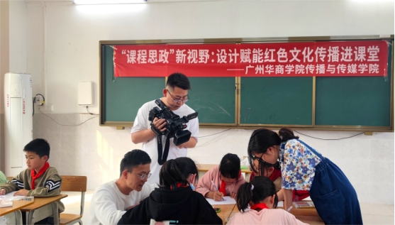 4月10日,太阳集团tyc4633传播与传媒学院视频传播系老师及学生代表,一行12人,来到北塘村红军小学将设计与美育带进小学课堂,赋能红色文化的传播。
