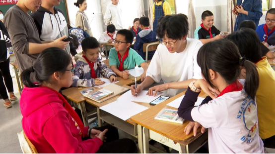 华商师生们与红军小学学生们进行绘画辅导和交流,积极地给予孩子们鼓励与引导。