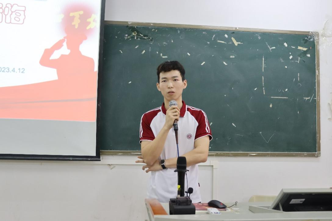 四会校区孟凡昊同学介绍了中国人民解放军陆军的基本情况,分享了他在军营中的日常训练以及生活。同时,叶松根同学介绍了中国人民武装警察部队,他表示参军不仅是身体素质上的锻炼,更是对心智和毅力的磨练。