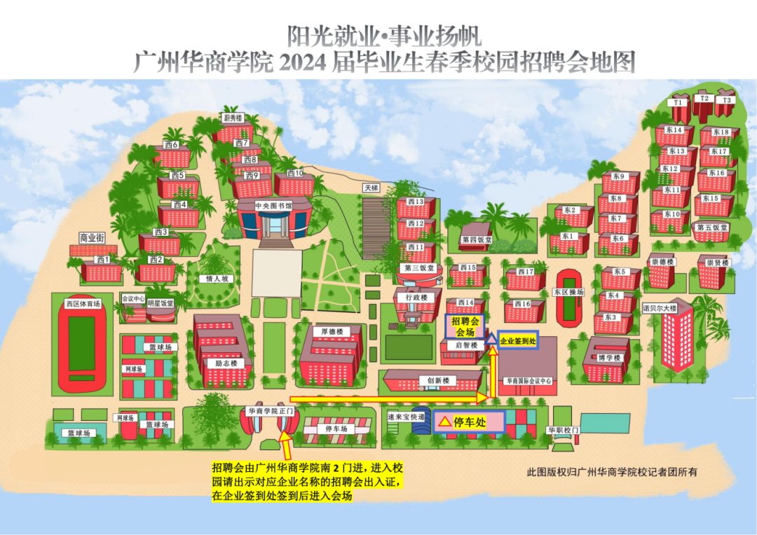 01.入校须知:招聘会当天,参会企业需凭【招聘会出入证】进出校园,听从安保人员的指引,到规定地点停车;如步行入校,也需凭【招聘会出入证】进出学校。【招聘会出入证】仅供参会企业使用,请参会企业留意邮箱及参会企业咨询微信群查收。