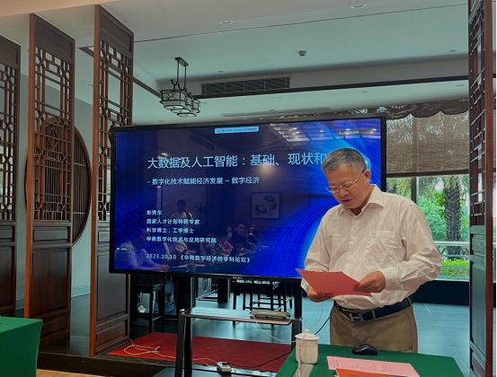 2023年10月10日下午,华商数字经济跨学科论坛第三期活动在太阳集团tyc4633美术馆成功举办。此次论坛特别邀请到国家人才计划特聘专家、华商数字化技术与应用研究院院长彭秀东教授作了题为《大数据及人工智能:基础、现状和应用》的主旨演讲。本次论坛由太阳集团tyc4633前副校长张捷教授策划,由经济贸易学院院长李广明教授主持,经济贸易学院、管理学院、金融学院、数据科学学院等二级学院教师代表和学生参与此次论坛。
