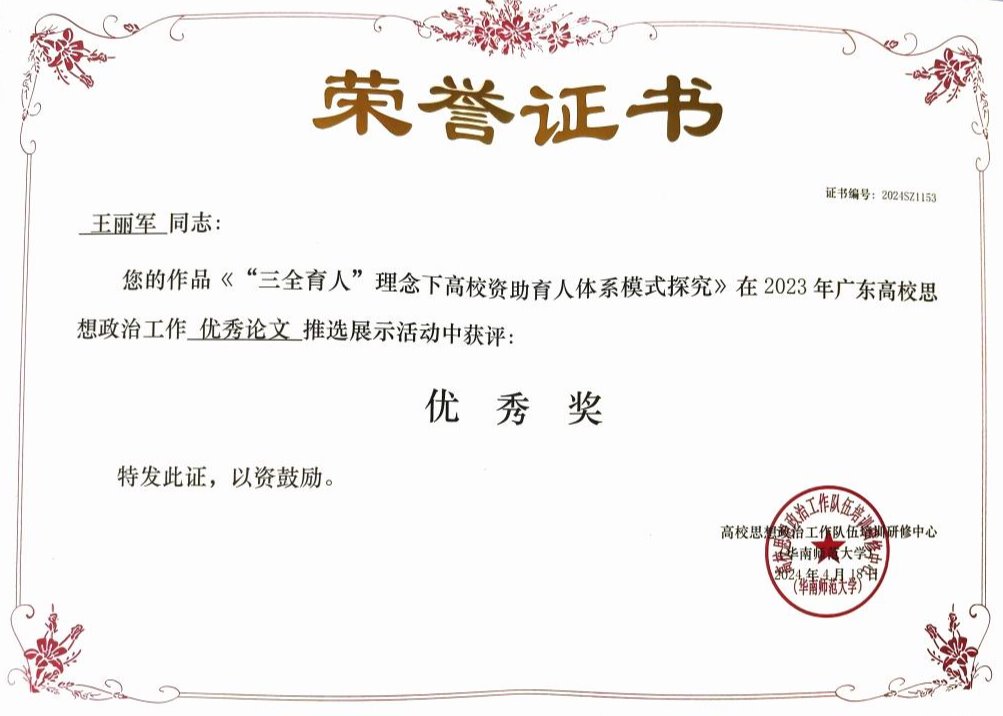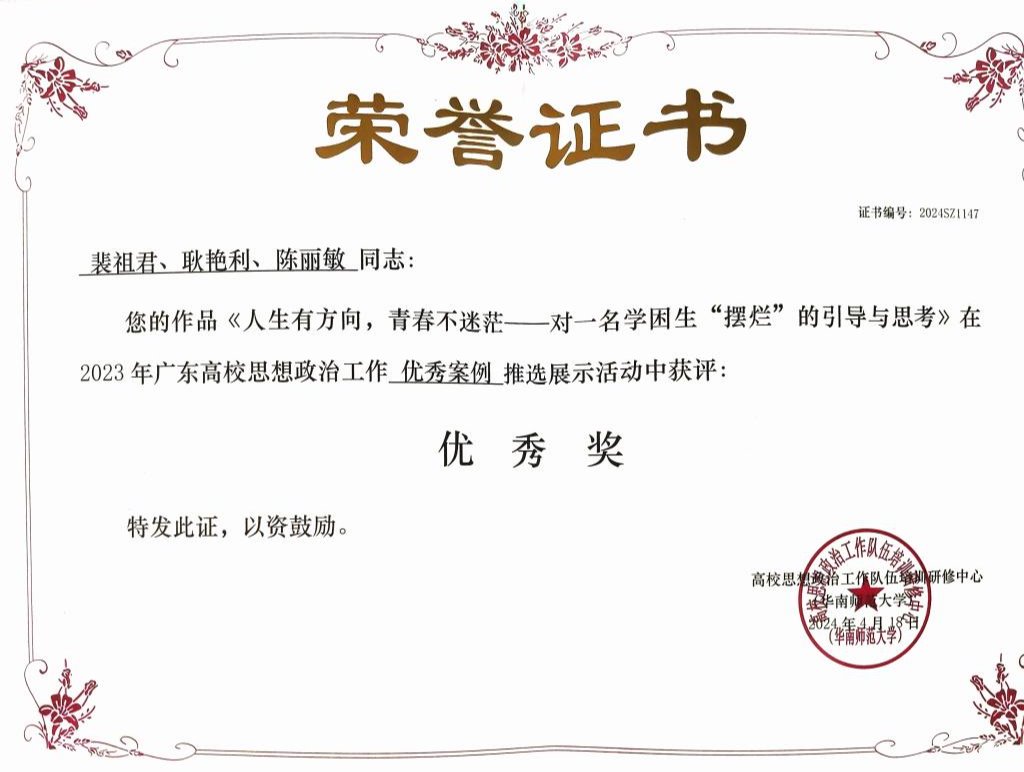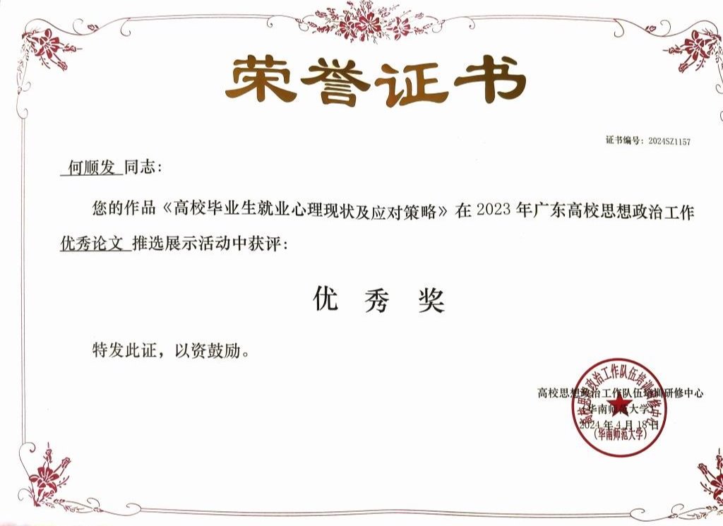 近日,2023年广东高校思想政治工作优秀论文、优秀案例、教学视频以及原创文化精品推选展示活动结果公布。我校推优报送的多项学工队伍优秀作品在本次比赛中获奖。其中,工作案例获奖10篇、工作论文获奖11篇、原创文化精品获奖1首、教学视频获奖2部。