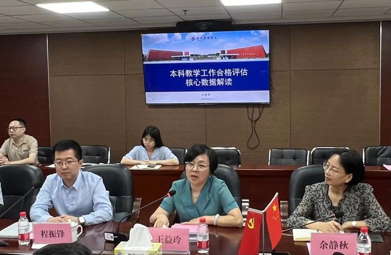 王益玲处长详细介绍了广州工商学院合格评估的基本情况和经验做法,对本科教学工作合格评估的核心数据,如生师比、教学日常运行支出、教学科研仪器、教学行政用房设备等进行了解读。王益玲处长指出,合格评估是对学校教学工作的全面检验,也是学校提升教学质量的重要契机。广州工商学院在合格评估过程中,坚持“以评促建、以评促改、以评促管、评建结合、重在建设”的方针,全面加强教学建设,不断完善教学质量保障体系,取得了显著成效。同时王益玲处长强调了数据真实性、材料齐备性、调阅快速性和沟通准确性,这四个要素是评估工作顺利进行的关键。