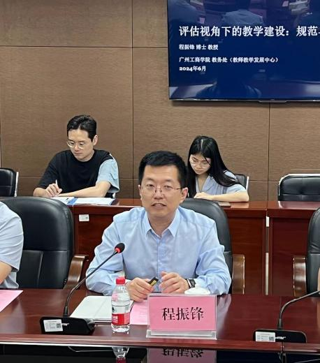 广州工商学院教师教学发展中心程振锋主任从教学建设、教师培训、教学竞赛三个方面详细介绍了广州工商学院的合格评估经验做法。程主任指出,教学建设应围绕“四个促进”“三个基本”“两个突出”“一个引导”的核心内涵。他强调教学建设的三个关键:核心数据、教学规范和创新成果。广州工商学院通过建立标准规范和创新机制,坚持“最小单元纠偏”、构建“校、省、国家”三级质量工程建设体系、建立有效激励机制,激发教师的积极性和创造力,体系化推动教学改革与提升教学质量。