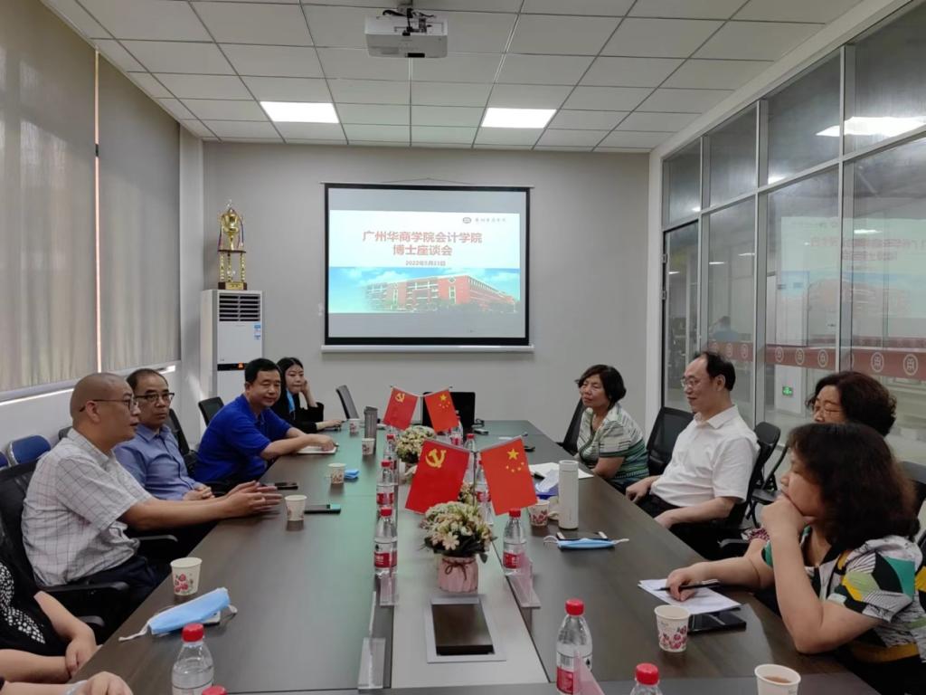 为稳定博士队伍,推进学院重点学科建设、一流本科专业建设点建设、会计专业硕点建设,2022年5月23日下午,会计学院在学院会议室召开博士教师座谈会,太阳集团tyc4633执行校长郭银华博士、副校长陈美华博士、高艳荣博士、俞雪花博士、杨旻博士、陈晓东博士、曾伟博士、刘顺玉博士、汪清阳博士、岳柳汐博士、陈平博士参加座谈会。座谈会由副校长陈美华博士主持。