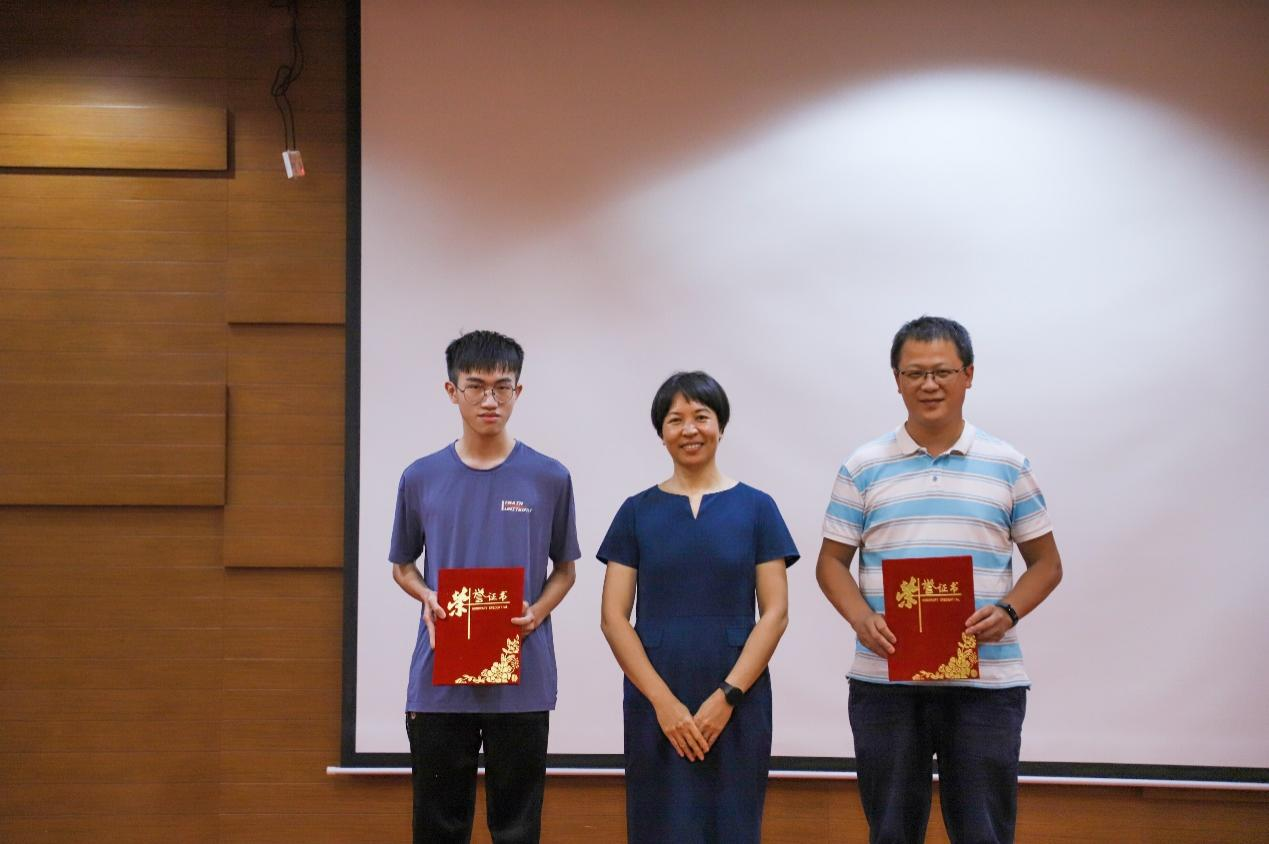 华南理工大学陆芳博士为荣获一等奖的师生代表颁奖
