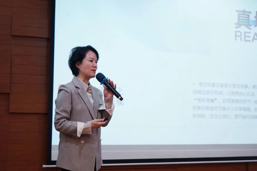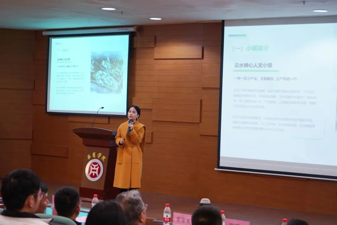 云水禅心人文小镇项目负责人谭凯飞女士就本次校企合作共建创新创业实践基地进行介绍。谭女士从市场分析、项目背景、合作模式三个方面进行阐述,指出应以乡村休闲产业振兴带动乡村土地资源、产业链、就业、人才的全面振兴与发展为政策抓手;以消费升级推动乡村旅游业长期增长,疫情难掩需求复苏为市场潜力;以供需两端兼具良好的产业发展土壤,有潜力做到千亿规模为广东特色。她着重介绍了云水禅心人文小镇的商业业态和生活空间。同时她强调,创新创业实践基地是由乡拾文旅发起的青年创客空间招募,鼓励青年们加入到增城乡村振兴、乡村文旅运营中来,与乡拾文旅一起建设更美好的乡村。