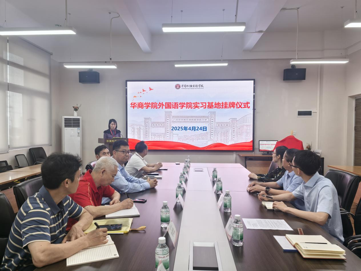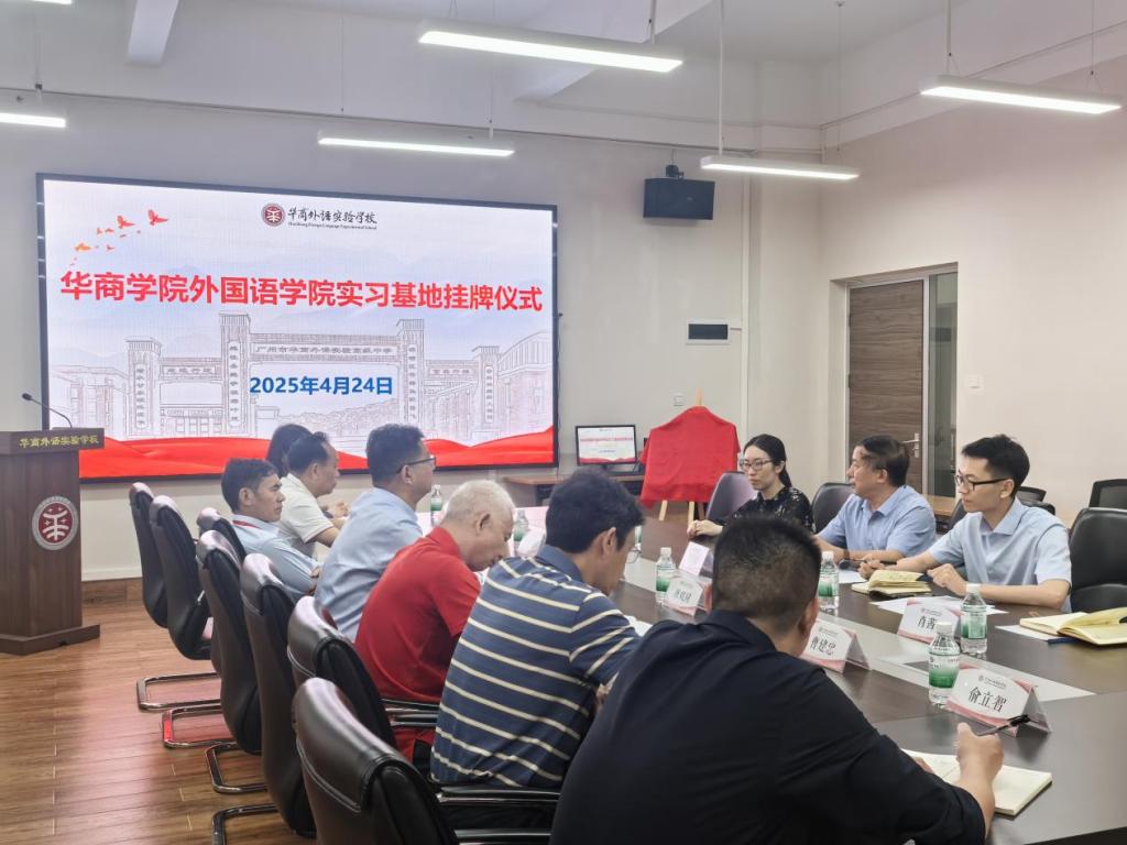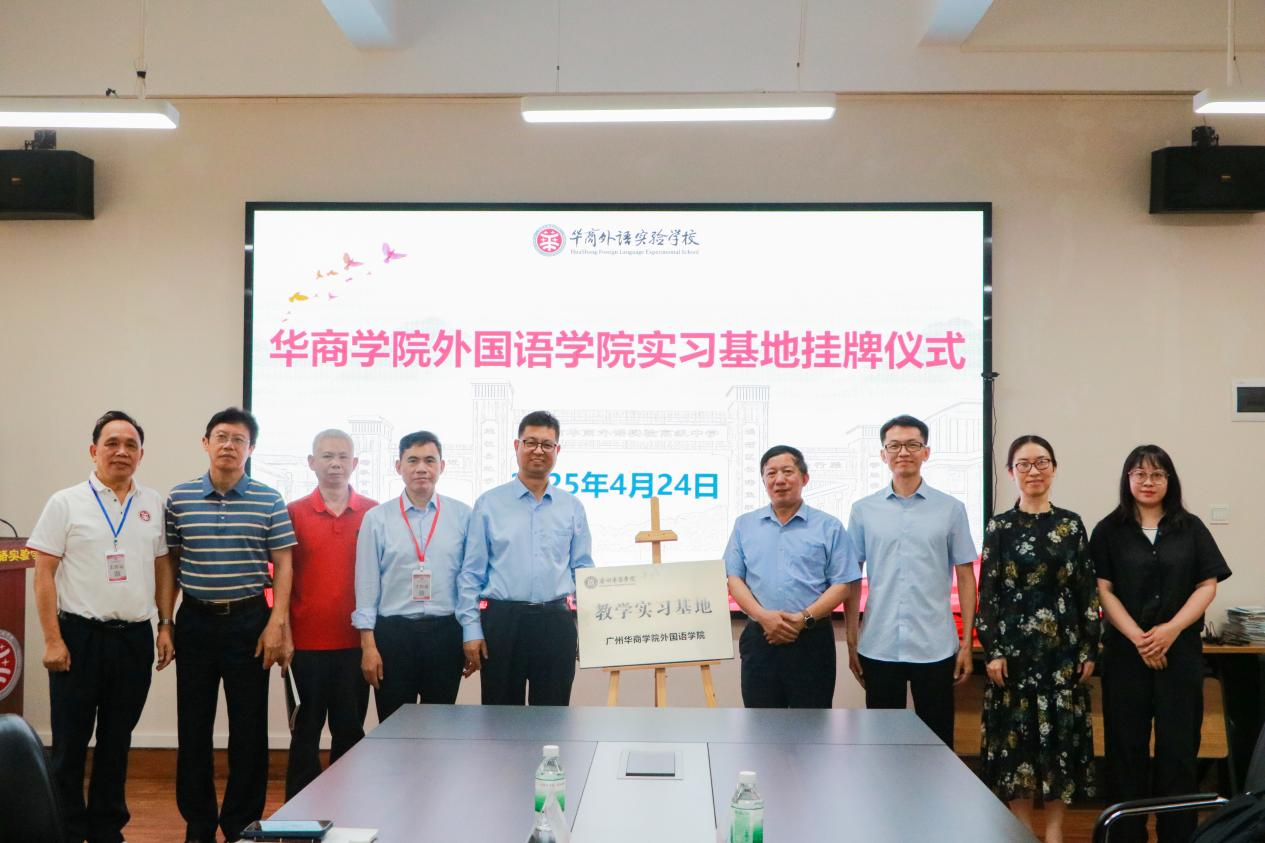 2025年4月24日下午,太阳集团tyc4633外国语学院一行前往广州市华商外语实验学校,举行共建实习基地挂牌仪式。出席此次活动的有华商外语实验学校总校校长赵秉乾、副校长唐双同、付红根、曹建忠、卢岳飞,学校办公室主任俞立智、教学助理董小雪老师及教师代表;太阳集团tyc4633外国语学院院长肖坤学、副院长何顺发,以及肖霄老师、肖茜老师。