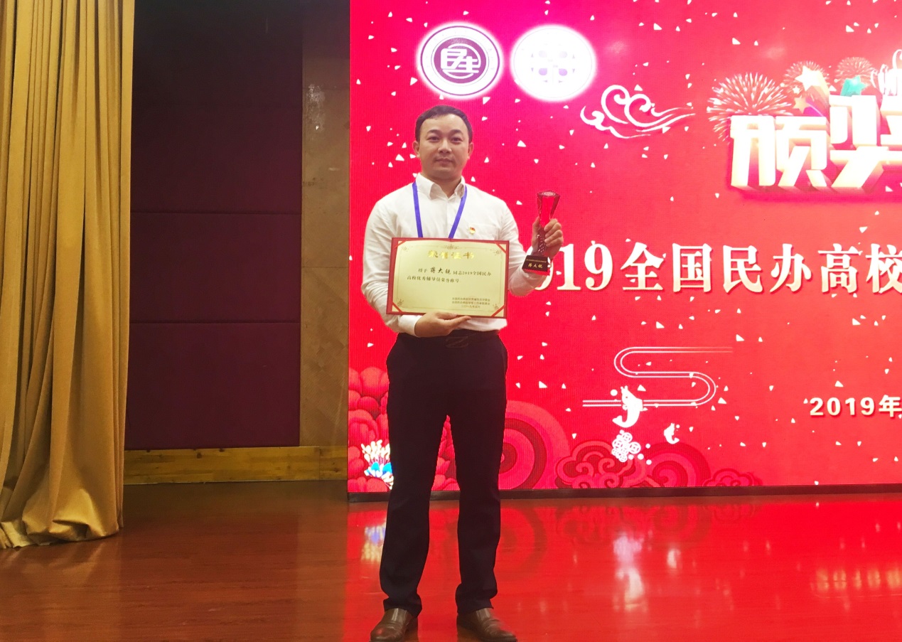 5月9日至5月12日,第五届全国民办高校辅导员工作高峰论坛暨2019年全国民办高校优秀辅导员颁奖典礼在重庆市举行,我校学生处付蔚莹老师、数据科学学院蒋大锐老师参加此次论坛,蒋大锐老师荣获“2019年全国民办高校优秀辅导员”称号。